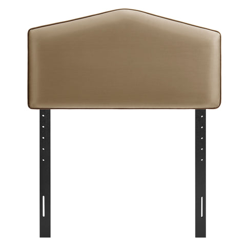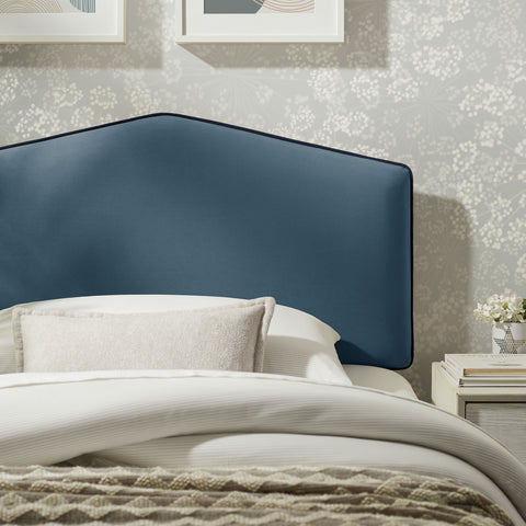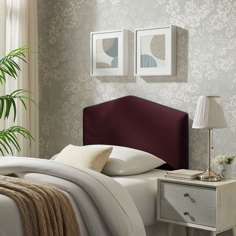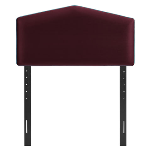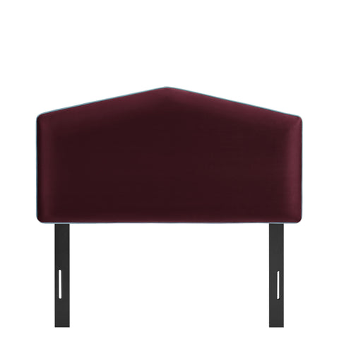 Make everyday lounging and bedtime routines more comfortable with the Cosette Velvet Twin Headboard. Shaped with a simple center point and straight, sloping sides, this twin headboard is wrapped in smooth, stain-resistant performance velvet and finished with a clean contrast piping trim. Inside, dense foam padding keeps the headboard soft and cushioned, and the slightly puffed front tapers gently toward the center for a relaxed, pillow-like look. A sturdy wood-blend frame with adjustable legs lets this upholstered headboard align with different mattress heights, making this modern twin headboard perfect for both pared-back rooms and more playful, avant-garde spaces.