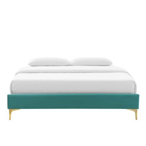 Uplift your master bedroom or guest bedroom decor with the Sutton Performance Velvet Twin Bed Frame. A Twin size bed frame covered in stain-resistant performance velvet, this upholstered bed frame is a sturdy mattress foundation for memory foam, innerspring, latex, and hybrid mattresses. Eliminating the need for a box spring, the MDF frame of this Twin bed is complete with a wood slat support system crafted with poplar for lasting durability and support. This slatted bed frame rests on gold metal legs with non-marking foot caps and includes a reinforced center beam with two support legs for enhanced stability. The Sutton Bed Frame is compatible with a variety of different headboard styles, or makes a statement as a stand-alone piece in the bedroom. Bed frame interchangeable with Paige, Alyson, Angela, Veronique, Evelyn, Dawn, Cecilia, Lucia, Rosalind, Delilah, Greta, Louisa, Eloise, Daisy, Sadie, Sloane, Fallon, and Lizzy. Mattress not included. Assembly required. Twin Size Bed Frame Weight Capacity: 800 lbs.