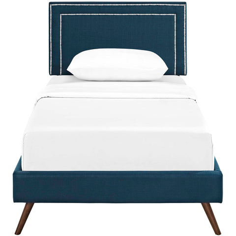Virginia Fabric Twin Platform Bed with Round Splayed Legs in Azure by Modway