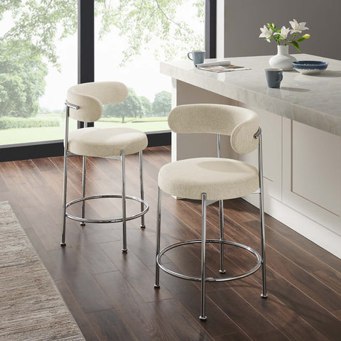 Experience luxury and modern sophistication with the Albie Fabric Dining Counter Stools - Set of 2. Upholstered in high quality fabric, this counter-height stool set exhibits a chic silhouette with its rounded seat and curved backrest, enhancing your dining or kitchen area's aesthetic. Resting on adjustable non-marking foot pins to provide stability and protect your flooring, the bases of these counter stools are crafted from sleek tubular metal that's the perfect complement to the charming upholstery. The dense padded foam seat cushions and backrests offer a premium seating experience during everyday mealtime or entertaining. Minimal assembly is required with easy to follow instructions. Weight Capacity: 330 lbs.
