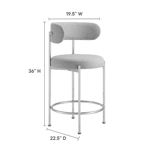 Albie Fabric Counter Stools Set of 2 in Gray Silver by Modway