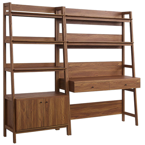Let productivity take centerstage in your home office with the Bixby Collection. Stack your favorite reads and display home accessories on the stylish bookshelf while you focus on the task at hand seated at the spacious desk. Featuring a slim, tiered silhouette, the Bixby Office Collection blends organic wood grain with the sleek lines of the shelves to create beautiful contrast. With plenty of room for storage and display, this bookshelf is complete with three spacious shelves and a concealed storage area on the bottom. The desk boasts three shelves and two pull-out drawers. This set is crafted with particleboard and MDF for a sturdy construction that's built to last.