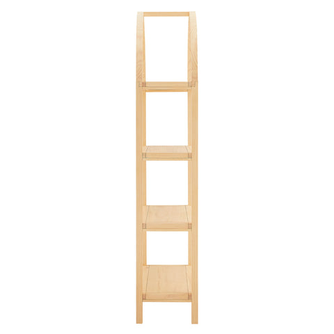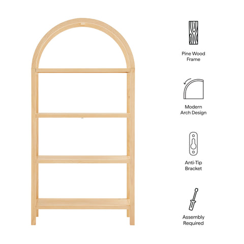 With its sculptural curves and modern take on classic arches, the Vexley Arched Bookshelf brings an artful edge to any space. Ideal for showcasing curated objects, favorite reads, or design-forward accents, this large 72 inch open shelf bookcase plays with negative space and architectural curves, bringing an airy, artful touch to blank walls or creative corners. Built from a pine wood frame and shelves, Vexley offers both strength and style. For added safety, it includes an anti-tip bracket on one of the middle shelves and non-marking glides to protect flooring. A true conversation starter, this arch bookshelf makes a bold statement without visual clutter, blending modern form with effortless display potential. Assembly required. Weight Capacity: 220lbs.