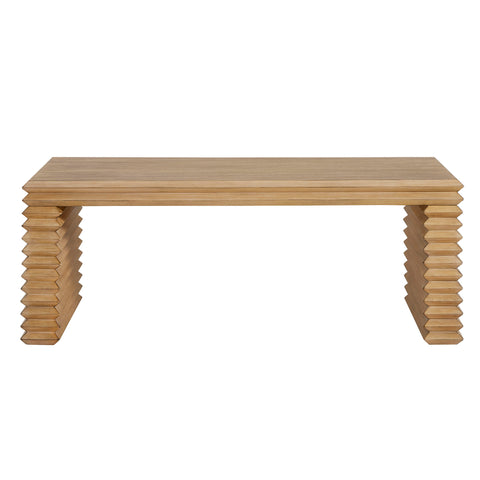 Sculptural and grounded, the Canto Coffee Table makes a bold impression in any modern living space. With its clean form and eye-catching stacked leg design, this rectangular coffee table blends architectural expression with refined materiality. The tabletop is finished in an oak wood grain veneer, offering durability and a warm, natural aesthetic. The grooved, layered base adds dimension and rhythm—subtle yet striking from every angle. Whether styled in a minimalist living room, a mid-century modern setting, or a contemporary office lounge, this center table functions as both a surface and a statement piece. At 47 inches wide, it offers ample space for decor, drinks, books, and everyday moments. Assembly required. Weight Capacity: 240 lbs.