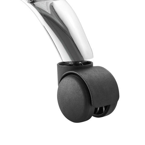 Focus on the task at hand while bringing modern style to your workspace with the Ripple Armless Drafting Chair. Outfitted with a chrome metal frame and five dual-wheel casters for easy mobility over hardwood or carpeted surfaces, this padded drafting stool is upholstered in durable vegan leather and covered in dense foam for added comfort. An ergonomic choice for workstations, this vegan leather drafting-height office chair features a mid-back design, channel tufting, and fine stitching throughout. This drafting chair is fully height adjustable with a 360-degree swivel and its drafting-height makes it suitable for standing desks, drafting tables, reception desks, and more. Assembly required. Weight Capacity: 287 lbs.