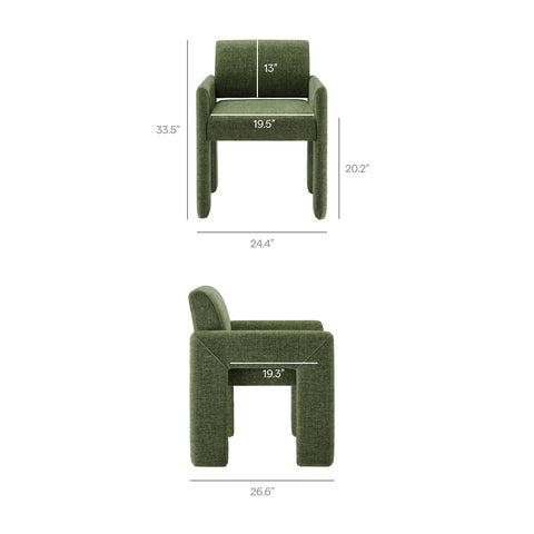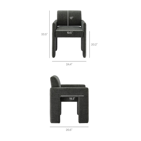 The Daven Upholstered Dining Chair combines mid-century modern style with supportive comfort in a sleek, versatile design. Fully upholstered in woven, heathered fabric, this modern armchair delivers a clean silhouette ideal for dining rooms, offices, bedrooms, or living rooms. Thoughtfully constructed with a webbed seat support system and dense foam cushioning, Daven offers lasting comfort whether used as a modern upholstered dining chair or an occasional accent seat. Its distinctive base features angled legs and a low-profile stance, creating a spacious architectural look while remaining compact enough for small spaces. Designed with both aesthetics and practicality in mind, Daven includes discreet floor glides to protect surfaces and a secure bracket system to keep the backrest in place. This dining arm chair adds sculptural appeal when styled as a chic dining chair, reading nook accent, or office guest chair. Assembly required. Weight Capacity: 500 lbs.