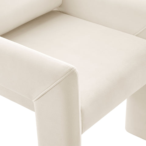The Daven Velvet Dining Chair combines mid-century modern style with supportive comfort in a sleek, versatile design. Fully upholstered in stain-resistant performance velvet, this modern armchair delivers a clean silhouette ideal for dining rooms, offices, bedrooms, or living rooms. Thoughtfully constructed with a webbed seat support system and dense foam cushioning, Daven offers lasting comfort whether used as a modern upholstered dining chair or an occasional accent seat. Its distinctive base features angled legs and a low-profile stance, creating a spacious architectural look while remaining compact enough for small spaces. Designed with both aesthetics and practicality in mind, Daven includes discreet floor glides to protect surfaces and a secure bracket system to keep the backrest in place. This dining arm chair adds sculptural appeal when styled as a chic velvet dining chair, reading nook accent, or office guest chair. Assembly required. Weight Capacity: 500 lbs.