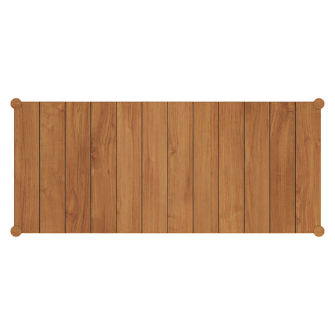 Made for open-air meals, the Eleni Outdoor Teak Wood Dining Table brings a warm coastal presence to patios and decks. Crafted from solid teak that showcases the wood’s natural grain, this 89-inch patio dining table comfortably seats six. Its slatted tabletop promotes airflow and quick drainage, while rounded posts keep the silhouette clean and sturdy. Style this rectangle dining table with your existing chairs or pair with it the matching Eleni dining armchairs for a coordinated set. Equipped with non-marking foot caps to help protect decking and stone. Simple assembly required. Weight Capacity: 500 lbs.