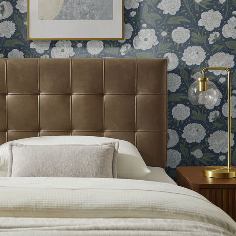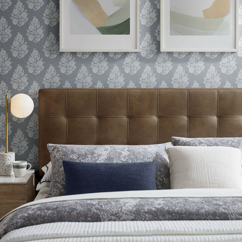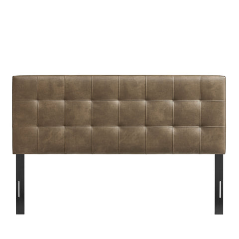 Update the bedroom with the Lily Queen Size Vegan Leather Headboard, designed to feel smooth, tailored, and easy to style. Padded with dense foam and wrapped in faux leather, this upholstered headboard features biscuit tufting for a crisp, paneled look that works well in primary bedrooms or guest rooms. Built on a sturdy wood-blend frame, Lily provides comfortable support when lounging in bed while adding a clean, modern accent that pairs well with both minimal and classic décor. Finished with five mounting positions, the height can be adjusted to suit different setups. Assembly required.