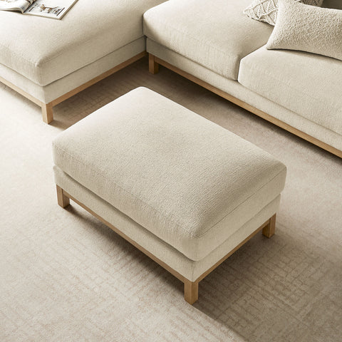 Refined lines and enduring design shape the Roscoe Rectangular Ottoman, a tailored take on American-traditional style. Upholstered in soft and subtle Mélange Chenille, this fabric ottoman features a plush, supportive top with a pocket coil and sinuous spring foundation that adds subtle resilience beneath your feet. The low, streamlined profile sits atop a kiln-dried weathered wood frame with integrated legs and non-marking foot caps for added stability and floor protection. A versatile rectangular ottoman for both modern and classic interiors, Roscoe works beautifully as a footstool or extra seating in any living room setting. Weight Capacity: 800 lbs.