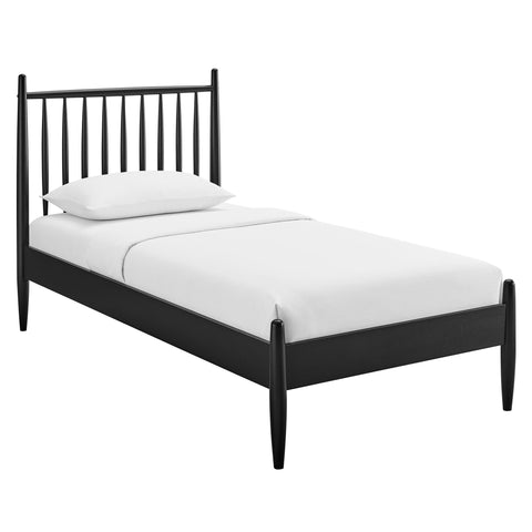 With classic lines and a modern, easygoing feel, the Zane Queen Size Spindle Bed brings a calm, tailored look to any bedroom. Crafted from durable rubberwood, this queen bed features a tall spindle headboard supported by smooth, rounded posts that taper gracefully toward the base for a clean, sculpted profile. Vertical rods keep the silhouette light, while the queen footprint makes it a comfortable fit for primary or guest rooms. Thoughtfully built for everyday living, the Zane queen platform bed frame includes sturdy wood slats that provide reliable mattress support—no box spring needed—bringing the timeless appeal of a midcentury modern platform bed to modern interiors. Weight Capacity: 800lbs.
