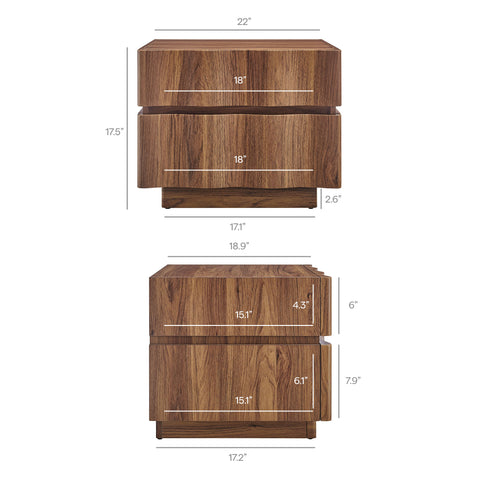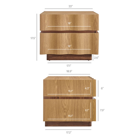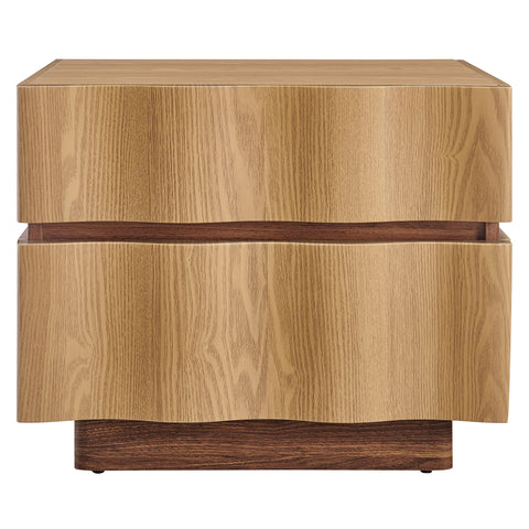 The Isola 2-Drawer Nightstand brings modern character to the bedroom with its smooth lines and distinctive design. This 22 Inch wood nightstand provides two roomy drawers that offer practical storage for everything from books to nighttime essentials. Resting on a plinth bottom with discreet plastic floor glides, the Isola bed side end table also works well as a living room end table or as an accent table in small spaces. Its clean profile and natural wood tones make it a timeless addition to any interior. Assembly required.