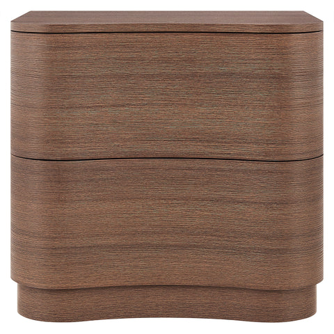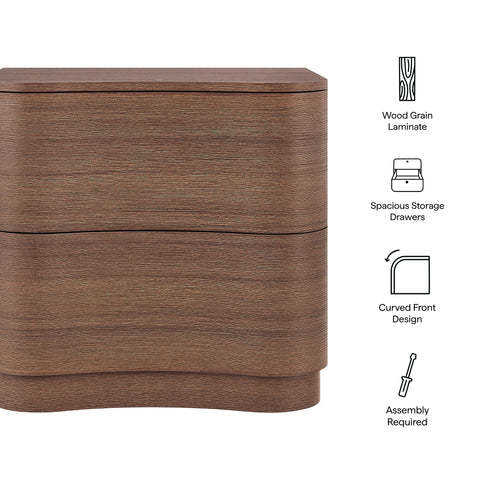 Sculptural lines and compact storage make the Mirae 2-Drawer Nightstand a modern essential for the bedroom or living space. Designed with a clean silhouette and softly curved drawer fronts, this bedside table adds a touch of dimension to any setting. Smooth wood grain laminate highlights the flowing form of this versatile nightstand, while two spacious deep drawers provide storage for books, accessories, or nighttime essentials. Whether styled next to a bed, sofa, or used as a side table, this versatile nightstand with storage blends functional design with artistic appeal. Assembly required.
