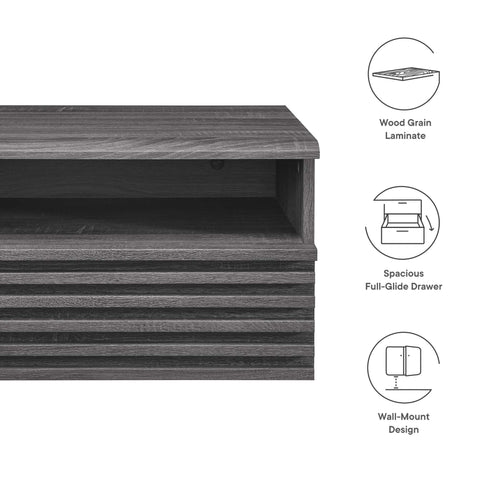 Tap into mid-century aesthetics with the Render Wall-Mounted Nightstand. Detailed with a slatted design, this nightstand features a durable particleboard frame with smooth wood grain laminate and a full-extension glide storage drawer. Boasting a mid-century modern style, this bedside table features a solid construction with a pleasing look and practical functionality that's perfect for the bedroom. A full-extension drawer offers ample storage space to keep your bedside essentials neat and organized. Assembly required.