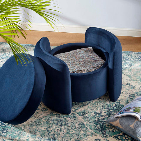 Relax amidst trending style and modern comfort with the Nebula Performance Velvet Upholstered Accent Ottoman. Bringing appreciated texture to your living space, entryway, bedroom, or other seating area, this accent ottoman is upholstered in a beautiful stain-resistant performance velvet fabric. Dense foam padding offers a premium seating experience and is perfect for kicking up your feet and relaxing. This storage ottoman has a removable seat to reveal the spacious storage area perfect for hiding TV remotes, an extra blanket, magazines, books, and more. Weight Capacity: 275 lbs.
