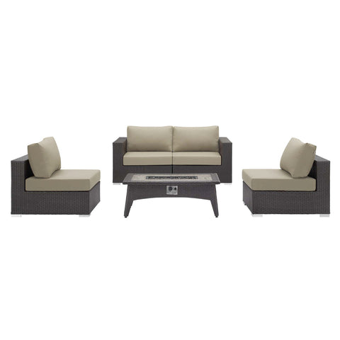 Convene 5 Piece Set Outdoor Patio with Fire Pit in Espresso Beige by Modway