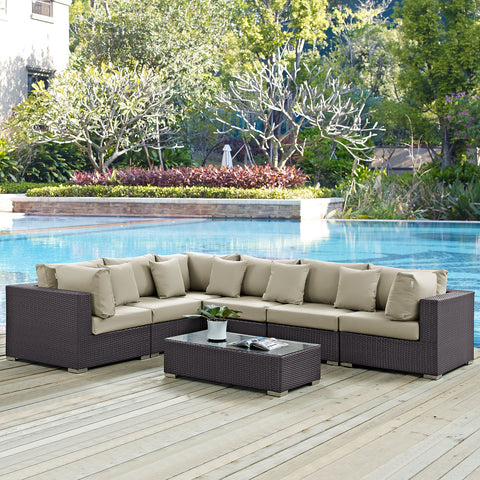 Convene 7 Piece Outdoor Patio Sectional Set in Espresso Mocha by Modway