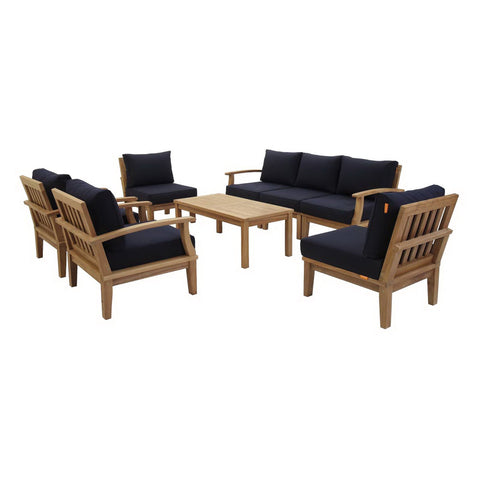 Harbor your greatest expectations with this luxurious solid teak wood outdoor set. Marina has a seating arrangement perfect for every member of your crew as you breathe the fresh, crisp air of a day spent with friends and family. Known for its natural ability to withstand extreme weather conditions, teak is the wood selection of choice for long-lasting outdoor furnishings. Now you can enjoy Marina’s durable construction and all-weather cushions, alongside a modern design that persistently looks new and welcoming. Zoom in on the product image before you, and see the exquisite texture and detail for yourself.