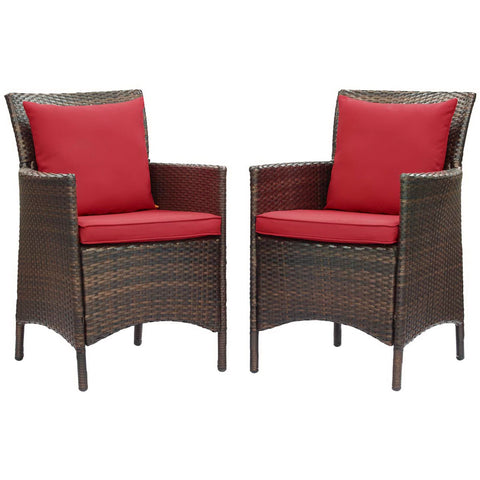 Conduit Outdoor Patio Wicker Rattan Dining Armchair Set of 2 in Brown Red by Modway