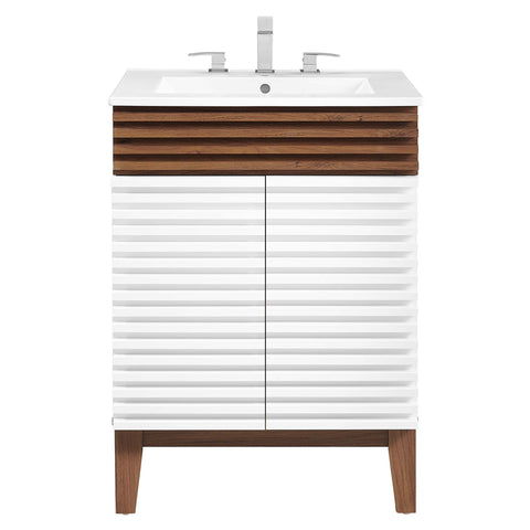 Render 18" Bathroom Vanity Cabinet in Walnut White by Modway