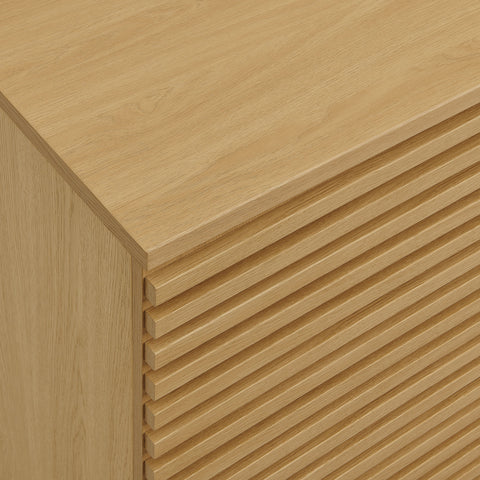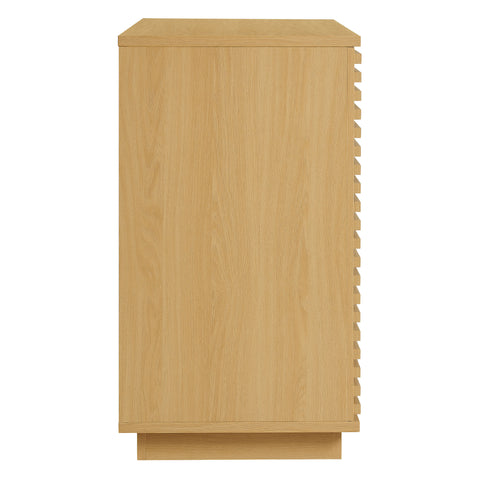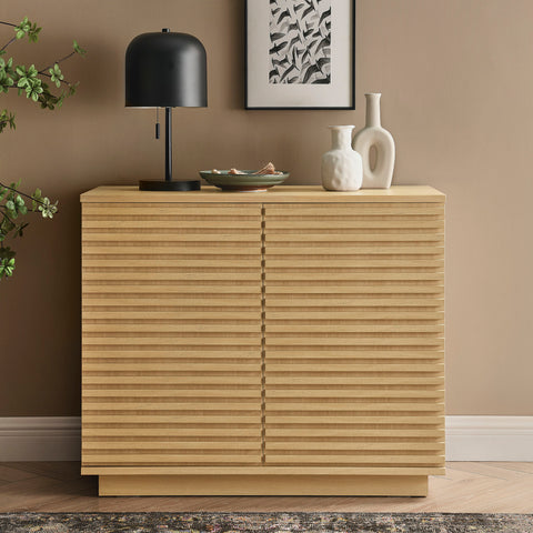 Tap into mid-century aesthetics with the Render Accent Cabinet, a versatile piece that can double as a buffet cabinet, media console, or storage cabinet for the entryway or living room. Featuring two push-to-open doors with fluted fronts, this 2-door cabinet conceals a spacious interior with an adjustable shelf, offering hidden storage while adding a unique, modern flair to your home. With a wood grain laminate finish, this accent sideboard cabinet complements a variety of decor styles, from minimalist to mid-century modern. Render’s soft-close hinges and push-to-open mechanism ensure smooth operation and easy access to your belongings, no matter if it’s placed in the dining room, hallway, or living room. Whether used as a buffet sideboard, contemporary accent cabinet, or small entryway cabinet, the Render Storage Cabinet delivers both style and practicality, elevating any space. Assembly required.
