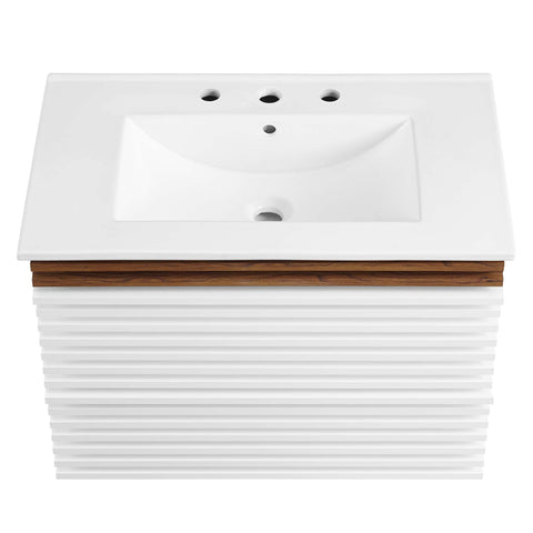 Render 24" Wall-Mount Bathroom Vanity in Walnut White by Modway
