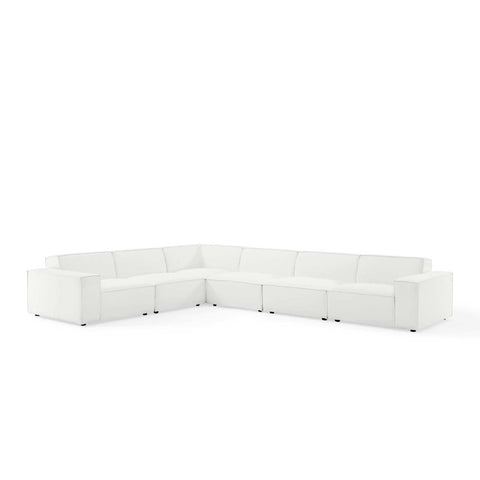 Create your custom living room and lounge area with the Restore Upholstered Fabric 6-Piece Sectional Sofa. The Restore Sectional Sofa appeals to minimalist elegance with a crisp design and broad lines accented with French piping details and polyester fabric upholstery. Dense foam padding and a pocket coil spring system in the cushions offer a luxe seating experience for your living room and lounge. The Restore Living Room Sectional Sofa is solidly constructed from plywood and wood with non-marking foot caps to protect flooring and connectors between modular pieces.