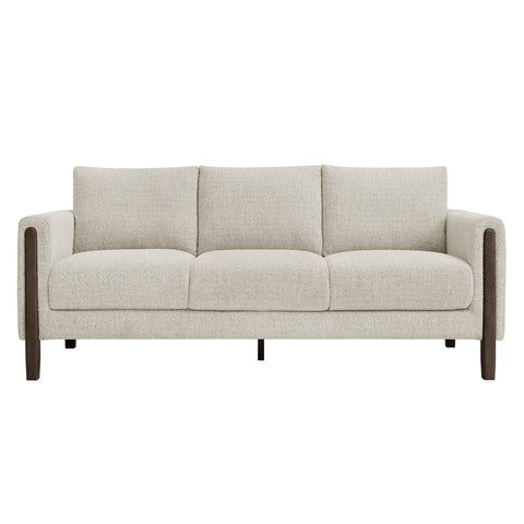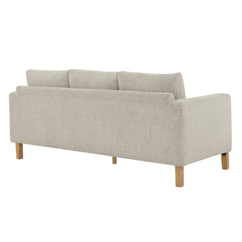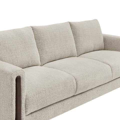 Settle into sculptural comfort with the Hawken Boucle Fabric Upholstered Sofa. Designed with bold curves and oversized proportions, this three-seater couch offers a wide, inviting seat and gently sloped armrests for a cozy reading or relaxation experience. Upholstered in soft brushed boucle fabric, Hawken adds depth and visual warmth to any space—from living room to apartment to office lounge. The sturdy solid wood legs complement the textured boucle upholstery with natural warmth and mid-century charm. With a supportive foam-padded seat, plush back cushions, and zigzag spring suspension, this modern sofa delivers everyday comfort with timeless style. Assembly required. Weight Capacity: 500 lbs.