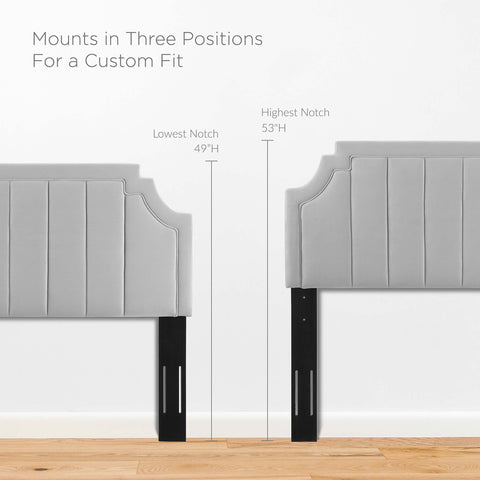 Alyona Channel Tufted Performance Velvet Full/Queen Headboard in Light Gray by Modway