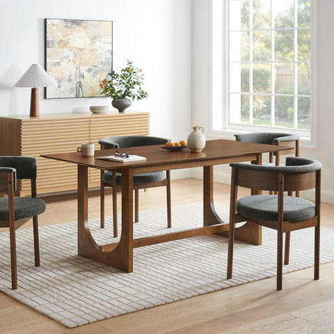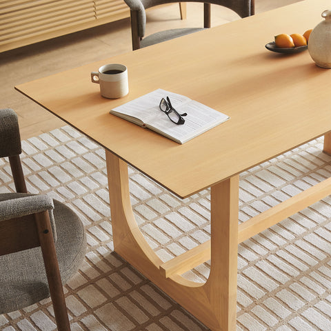 Make a strong, clean-lined statement with the Ashcroft Dining Table. Designed as a large dining table for 4–6 people, this modern rectangular table pairs a smooth wood veneer dining table top with a sculptural base built from rectangular table with U-shaped legs and a stabilizing center stretcher. The result is an architectural dining table that feels grounded and substantial, while still reading airy and modern from every angle. Sized to anchor a dining room or open-concept kitchen, Ashcroft works beautifully as a center kitchen table for dining room settings and everyday family meals. And thanks to its streamlined silhouette and generous surface, it also pulls double duty as a conference table or large desk for a modern workspace, meeting room, or home office. Assembly required. Weight Capacity: 400 lbs.