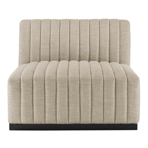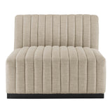 Conjure Channel Tufted Upholstered Fabric Armless Chair in Black Beige by Modway