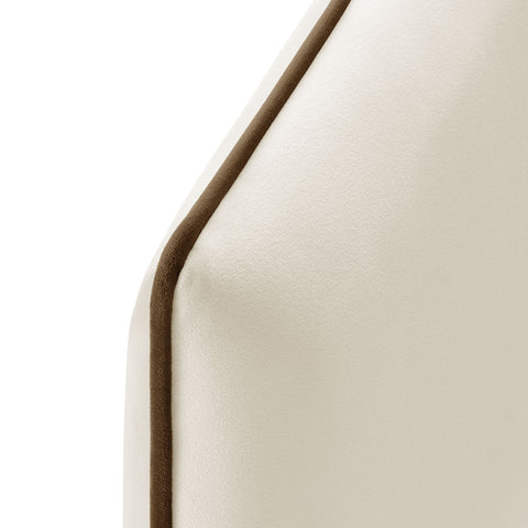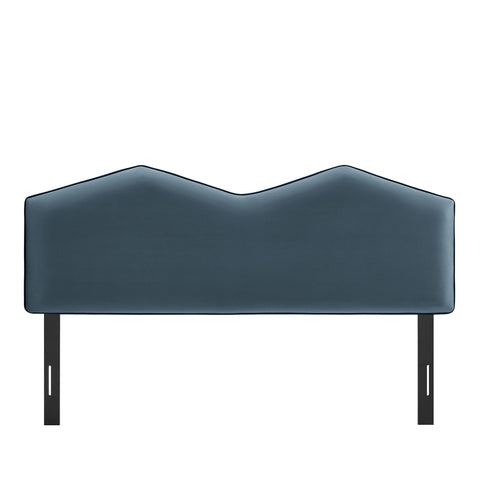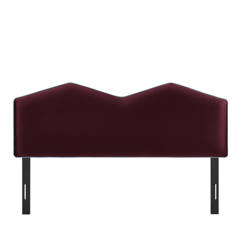 Make everyday lounging and evening wind-downs more comfortable with the Cosette Velvet Queen Headboard. Shaped with two gentle peaks and sloping sides, this queen headboard is wrapped in smooth, stain-resistant performance velvet and finished with a clean contrast piping trim. Inside, dense foam padding keeps the headboard soft and cushioned, and the slightly puffed front tapers up toward each peak for a relaxed, pillow-like look. A sturdy wood-blend frame with adjustable legs lets this upholstered headboard align with different mattress heights, making this modern queen headboard perfect for both pared-back primary rooms and more playful, avant-garde spaces.