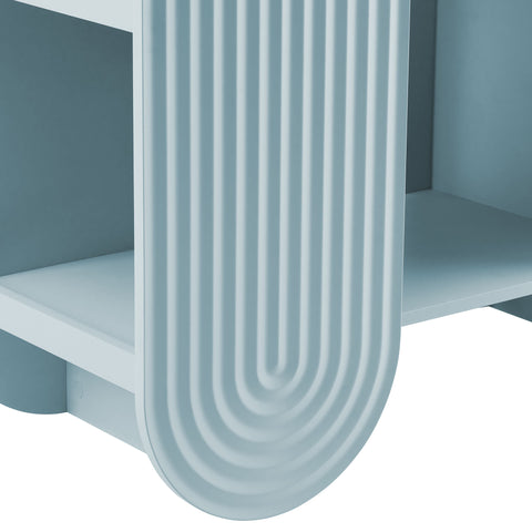 Let imagination take shape with the Daydream Bookcase, a sculptural display piece that blends whimsy, utility, and modern charm. At 58 inches tall, this arched ripple bookshelf offers a refreshing twist on traditional bookcases with its curved, oversized silhouette and dimensional detailing. More than just a storage cabinet, Daydream doubles as a playful focal point in a creative nook or cozy reading corner. With open shelving on both sides and through the center arch, this display case provides ample room for books, toys, decorative objects, or art supplies. Its rounded frame and ripple-textured front evoke a sense of motion and creativity. Designed with versatility in mind, this unique bookshelf complements both minimalist and maximalist interiors. Non-marking nylon floor glides protect your surfaces while keeping the arched bookcase stable. Whether placed in a playful family space or fun lounge area, Daydream transforms everyday storage into something magical. Assembly required.