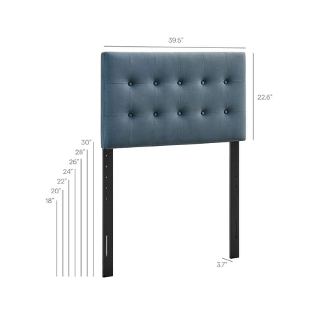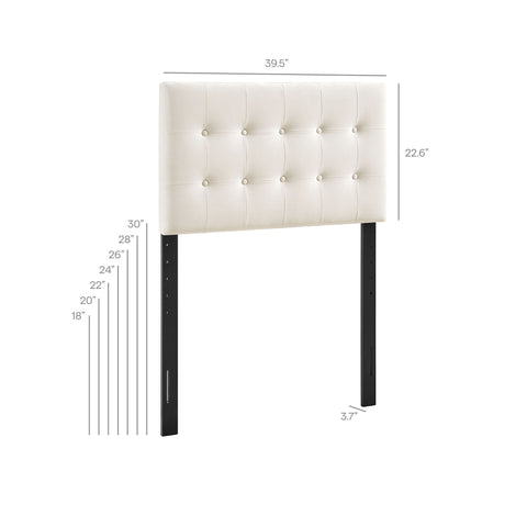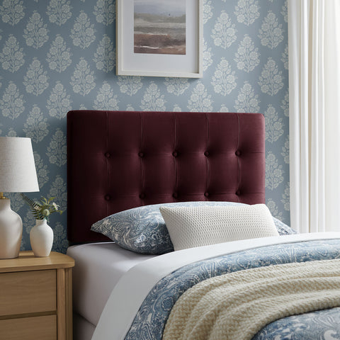 Sized for a full bed, the Modway Emily Button Tufted Headboard gives modern beds a finished, intentional look. Upholstered in stain-resistant performance velvet with classic button tufting, this full headboard adds a clean, structured backdrop to guest rooms or studio spaces. Made with a wood blend frame, Emily offers a supportive foundation while pairing easily with contemporary and minimalist styles. Featuring 7 mounting positions, it adjusts to the height that works best with your full bed frame.