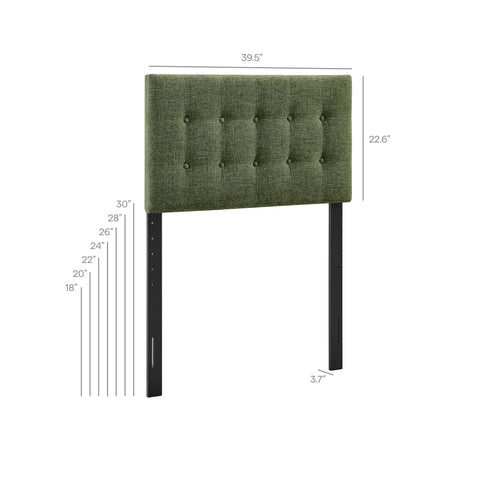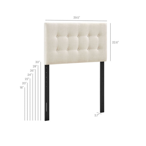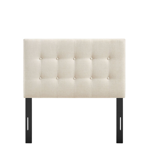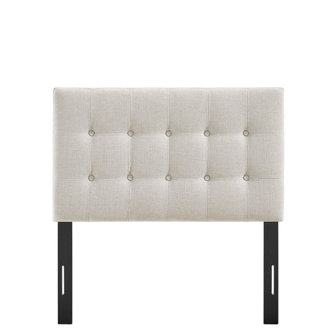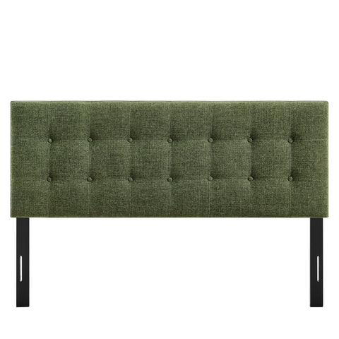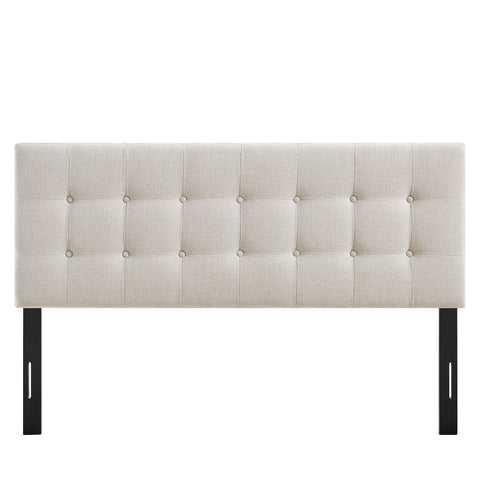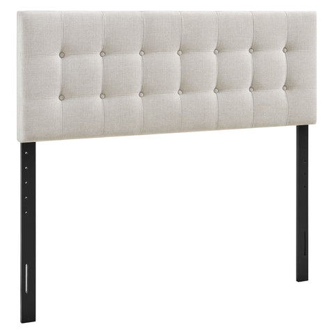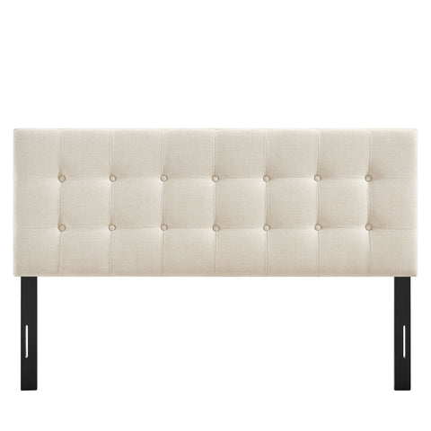 Sized for a full bed, the Modway Emily Button Tufted Headboard gives modern beds a finished, intentional look. Upholstered in premium linen-like fabric with classic button tufting, this full headboard adds a clean, structured backdrop to guest rooms or studio spaces. Made with a wood blend frame, Emily offers a supportive foundation while pairing easily with contemporary and minimalist styles. Featuring 7 mounting positions, it adjusts to the height that works best with your full bed frame.