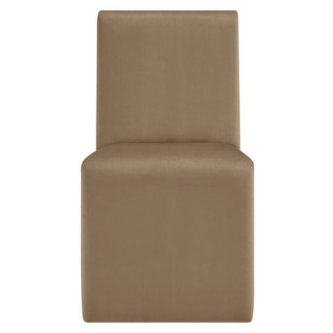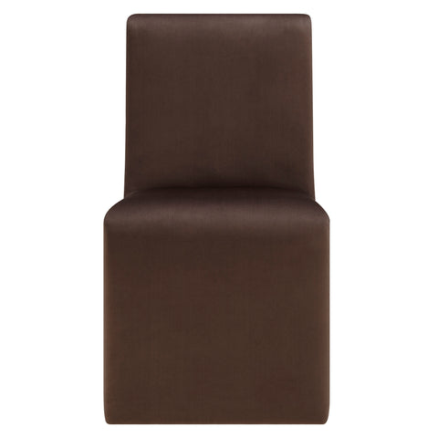 With its smooth curves and continuous form, the Emory Armless Dining Chair brings an elegant, contemporary feel to any space. Wrapped entirely in soft performance velvet fabric, this single slipper dining chair features a tall, gently angled backrest that provides support while maintaining a clean, minimal profile. The padded seat flows into the base with a waterfall edge that adds both comfort and balance. Its armless shape and crisp lines make it easy to style around a dining table or as a padded bedroom chair, or living room accent chair. Built with a sturdy internal wooden frame and finished with non-marking foot pins, Emory arrives fully assembled and supports up to 300 lbs.