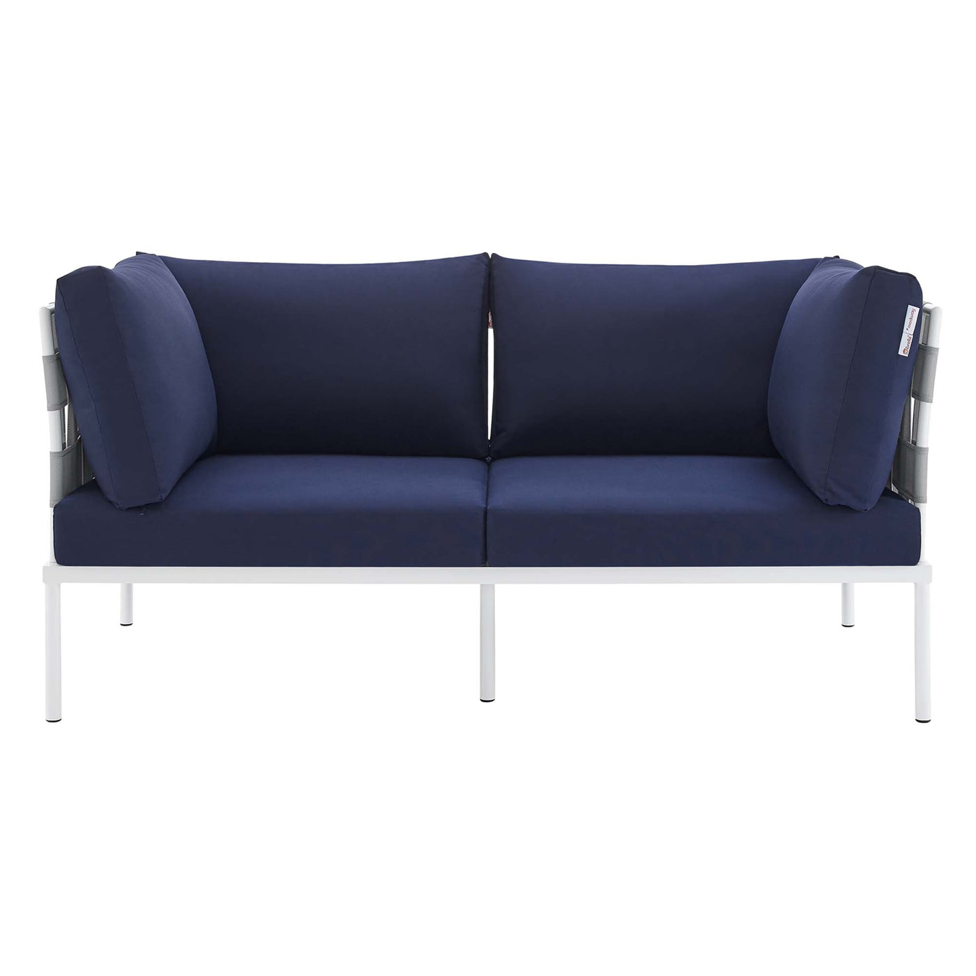 Harmony Sunbrella® Outdoor Patio Aluminum Loveseat in Gray Navy by Modway