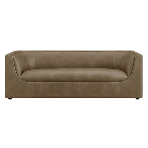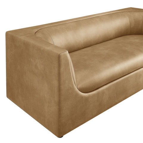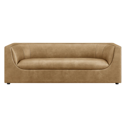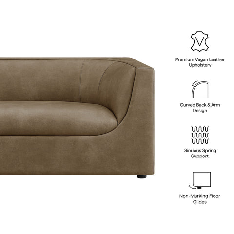 Hilda 86" Curved Back Vegan Leather Sofa in Toast by Modway