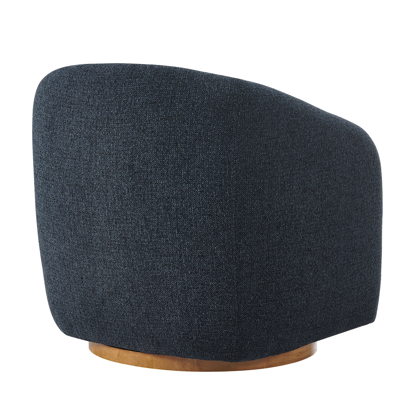 Transform your living space with the Holland Curved Swivel Armchair, where tailored elegance meets modern comfort. Upholstered in a textured chenille-like fabric with boucle-inspired depth, this accent armchair adds a sophisticated, cozy appeal to any room. Better for you and the environment, the upholstery fabric is also OEKO-TEX® STANDARD 100 Certified. The unique curved silhouette, sloping armrests, and soft, rounded edges create a minimalist look that feels both contemporary and inviting. Holland’s generous foam padding, spring coil support, and smooth swivel base offer plush, cloud-like seating with effortless mobility. Resting on a sturdy wood base with non-marking floor glides, this modern curved chair includes one matching ball accent pillow for added style and comfort. Perfect for living rooms, apartments, or offices, the Holland Barrel Swivel Armchair is a statement piece that blends form and function effortlessly. Arrives fully assembled. Weight Capacity: 800 lbs.