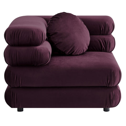 Reimagine your living space with the Jubilee Performance Velvet Modular Sofa Couch, a striking blend of retro flair and modern comfort. With its sleek design, the Jubilee 3-Piece Sectional provides a spacious seating experience without compromising on style. This 3-seater sofa includes two corner chairs and one armless chair that attach with alligator clamp couch connectors, keeping them securely in place or allowing you to separate them as needed. Draped in stain-resistant performance velvet fabric, this comfy sofa exudes luxury with its dense foam padding and intricate detailing. The thick, gently tufted cushions are arranged in layers, creating a plush, stacked appearance with rounded edges for a cozy feel. The included three round pillows enhance both comfort and vintage charm, making this performance velvet upholstered modular sofa an inviting spot to relax. With premium zigzag spring pocket coils for robust support and comfort, Jubilee is the perfect oversized living room sofa or comfy sectional couch for hours of lounging. Equipped with plastic foot pads to protect your floors, this modular sofa with round pillows is the retro fabric couch your modern decor needs. Assembly Required.