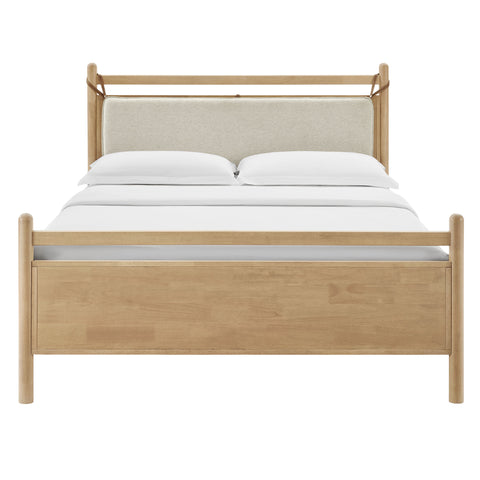 Leni Queen Size Wood Platform Bed Frame in Light Oak Heathered Ivory by Modway