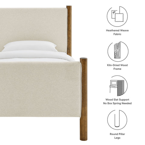 Maven Full Size Fabric Upholstered Platform Bed in Wheat Oak by Modway
