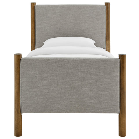 A perfect blend of comfort and craftsmanship, the Maven Full Size Platform Bed brings a stylish focal point to any bedroom. The upholstered headboard and footboard, padded and covered in a heathered weave fabric, provide a cozy, inviting backdrop framed by robust solid wood posts for a touch of timeless elegance. Designed with wooden slats that support your mattress while promoting airflow, this platform bed eliminates the need for a box spring. Ideal for compact spaces or guest rooms, the Maven Full Bed combines a modern look with practical functionality, making it an excellent choice for those seeking both comfort and durability. Weight Capacity: 794 lbs.