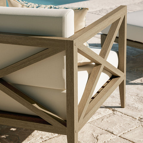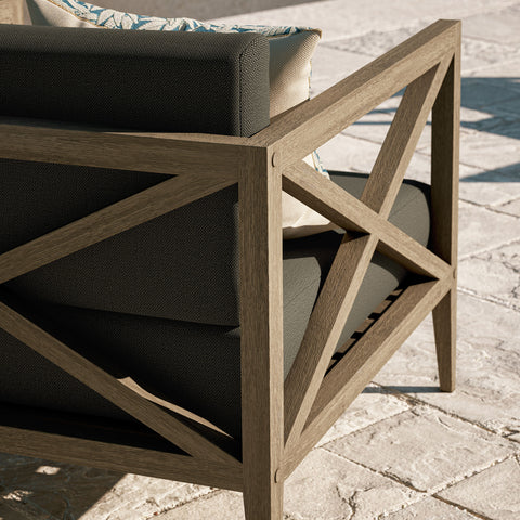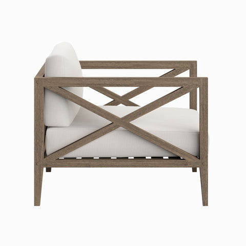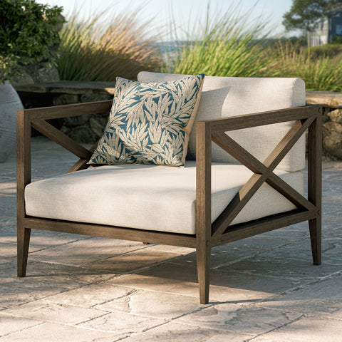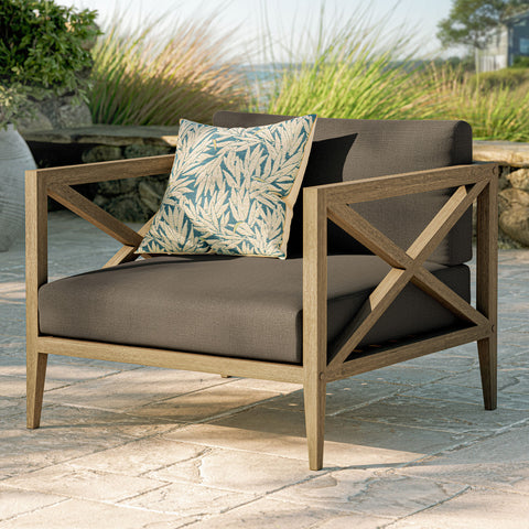 Soak in nature’s beauty with the Northlake Outdoor Lounge Chair, a stylish and comfortable addition to any outdoor space. Crafted from sturdy teak wood, this extra-wide patio chair features a distinctive cross-back design for enhanced support and a refined aesthetic. The slatted seat base ensures durability and airflow, while the plush, all-weather cushions offer water-resistant, fade-resistant, and quick-drying performance for year-round comfort. Designed for balconies, patios, porches, and poolside lounging, the Northlake Teak Accent Chair blends timeless craftsmanship with modern outdoor luxury. Includes non-marking floor glides for added protection. Assembly required. Weight Capacity: 500 lbs.