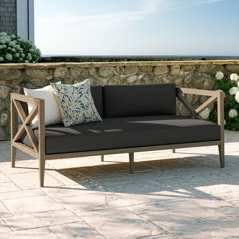 Soak in nature’s beauty with the Northlake Outdoor Loveseat, a stylish and comfortable addition to any outdoor space. Crafted from sturdy teak wood, this 2-seater outdoor couch features a distinctive cross-back design for enhanced support and a refined aesthetic. The slatted seat base ensures durability and airflow, while the plush, all-weather cushions offer water-resistant, fade-resistant, and quick-drying performance for year-round comfort. Designed for patios, porches, balconies, and garden lounges, the Northlake Teak Patio Loveseat blends timeless craftsmanship with modern outdoor luxury. This patio furniture collection includes non-marking floor glides for added protection. Assembly required. Weight Capacity: 500 lbs.