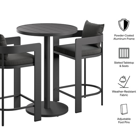 Tahoe 3-Piece Outdoor Aluminum Bar Set in Gray by Modway