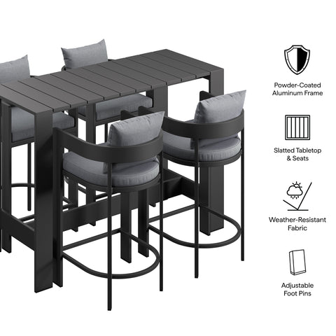 Tahoe 5-Piece Outdoor Bar Table Set in Gray by Modway